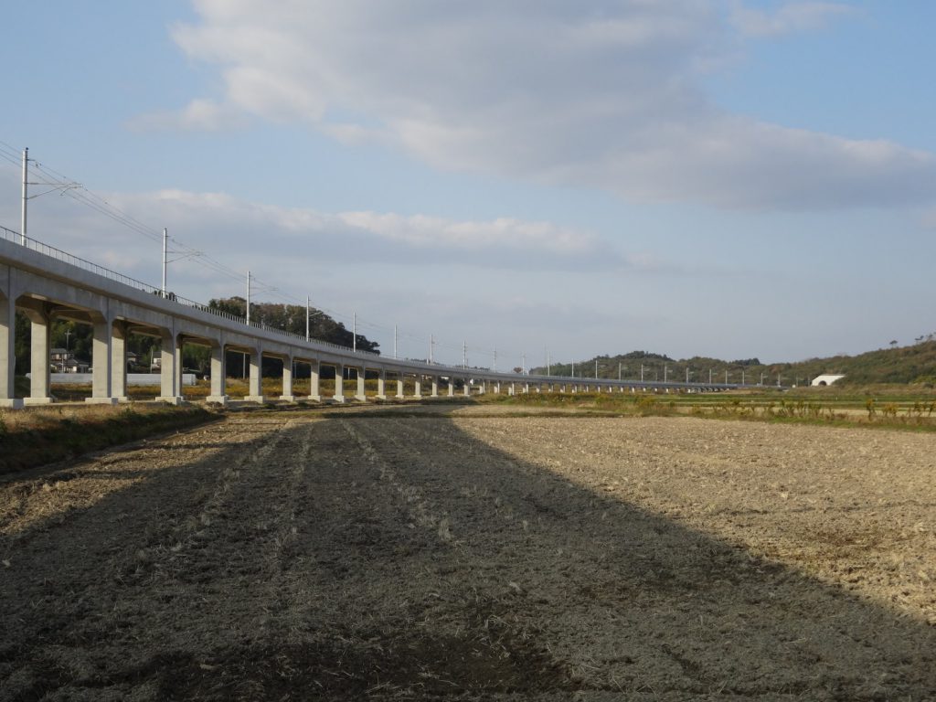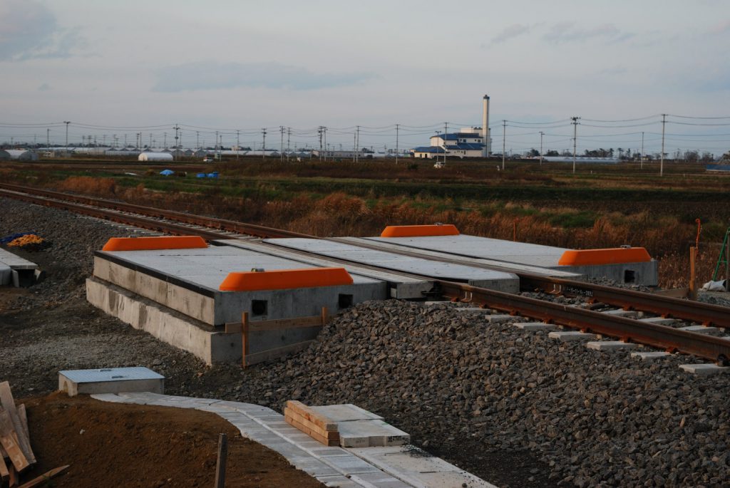 マニアックですが、地点Aでは踏切の新設もされていました。線路敷設前から踏切のコンクリート基礎を作っていたのですが、傍から見ると唐突に大きな塊が出現したように感じました。特に道路がない状態だと、地面からの距離が強調されてよりその感想を強めます。